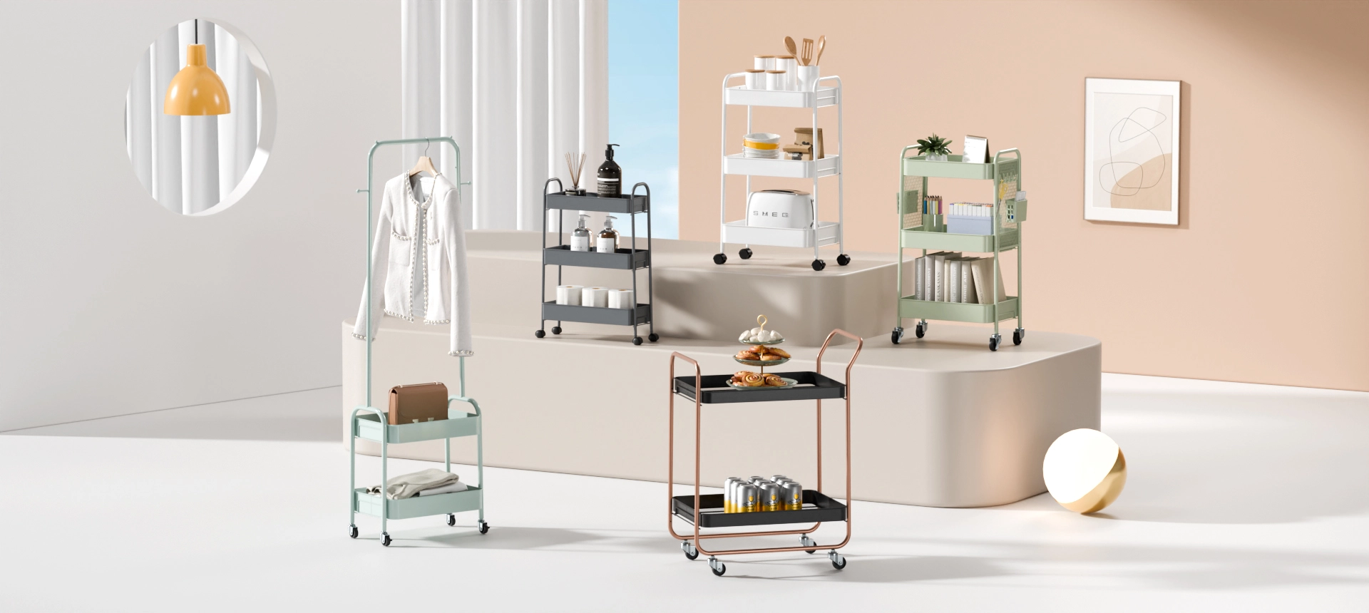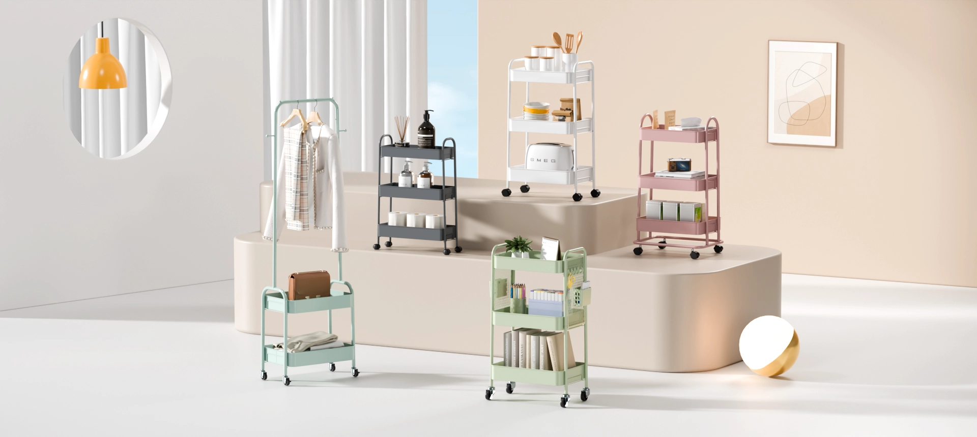 涵盖烫衣板、家用小推车、抽屉柜、晒衣架、鞋架。